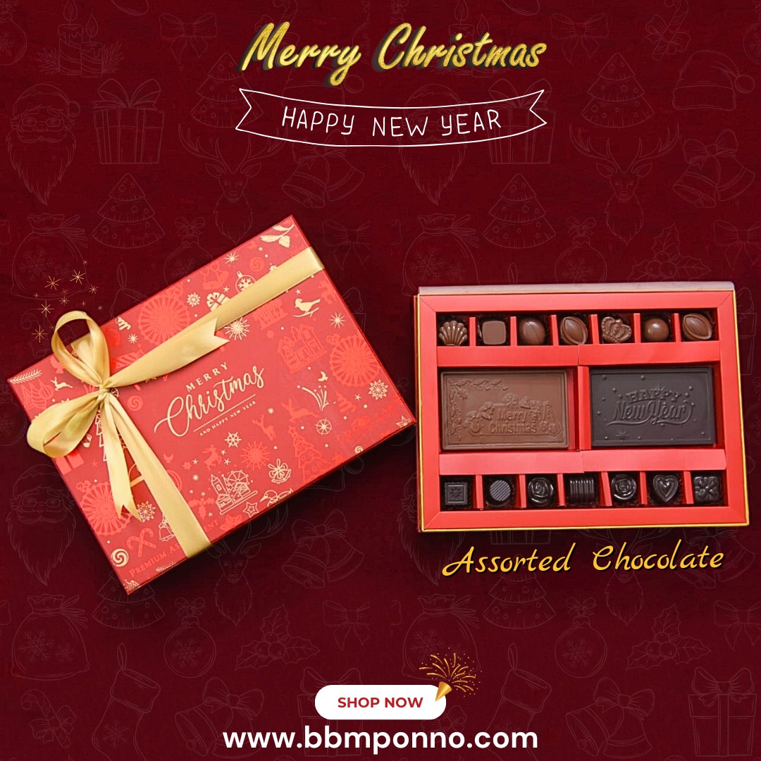 • আমাদের Premium Christmas New-Year Assorted Chocolate প্যাকটিতে রয়েছে ১৪টি মজাদার 😋 Assortment Chocolate এবং ২টি সুন্দর Christmas এবং Happy New-Year ডিজাইনের চকলেট বার