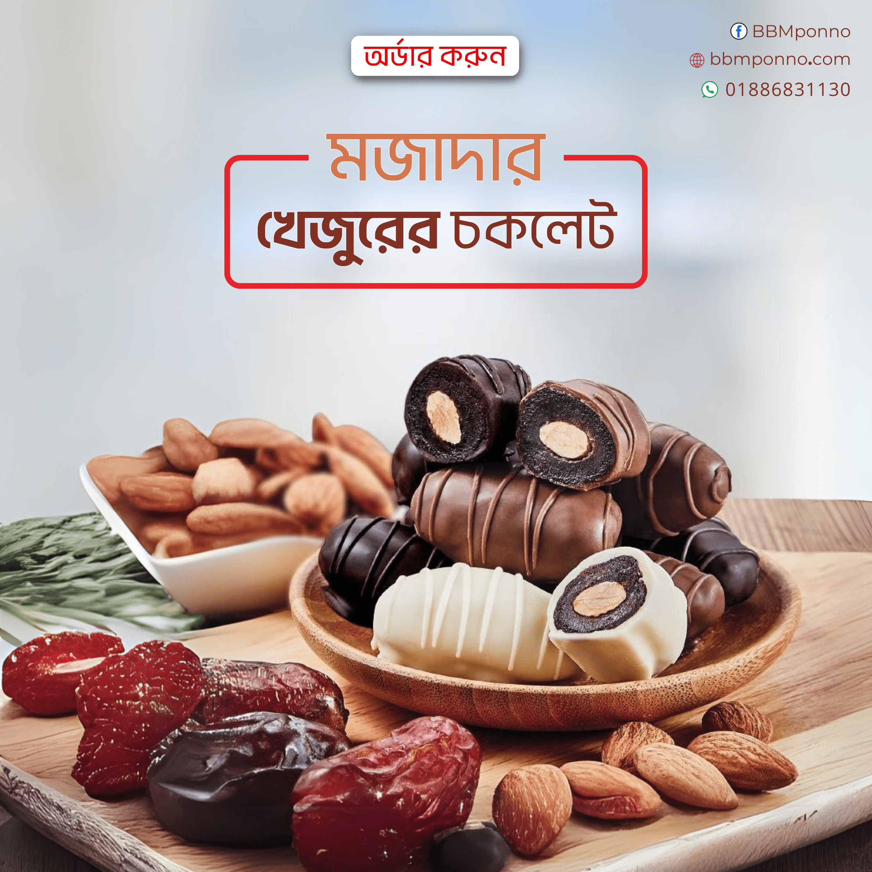 মজাদার চকলেট, খেজুর ও বাদামের অনন্য স্বাদ নিতে আজই অর্ডার করুন!
